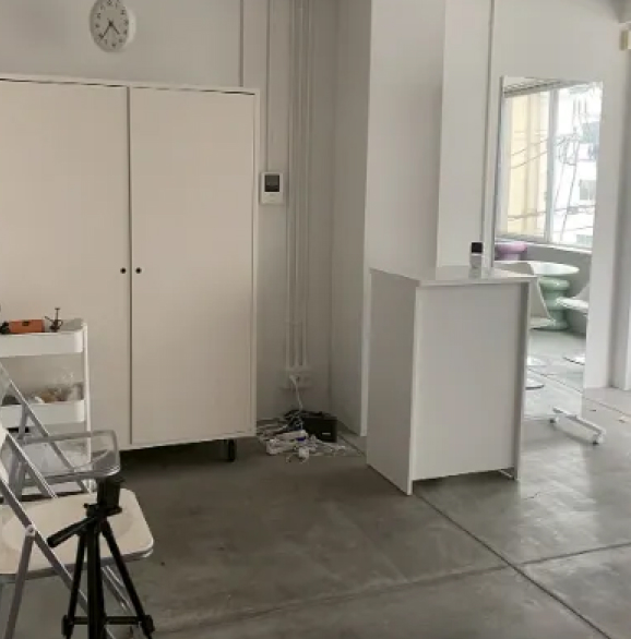 白ホリゾンと、自然光が入る24時間セルフレンタルスタジオ。